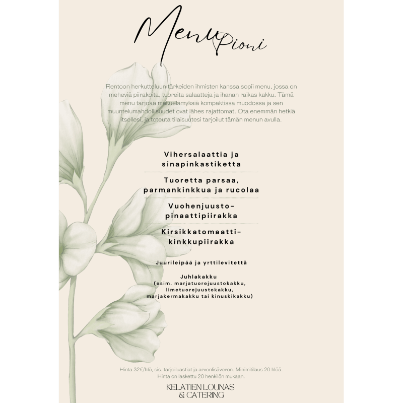 lopullinen hinta määräytyy ruokailijamäärän ja palvelukokonaisuuden mukaan.