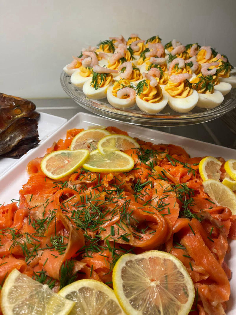 - Seisova pöytä, min. 50 hlö (pekoni, munakas, leikkeleet, sämpylät, kahvit ym.)
